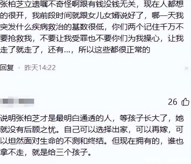 她无法跟家人之外的人交心,所以张女士习惯了早早为自己计划好一切,避免突发事件发生。 还有一个原因就是,这些年张女士积攒下的财富是巨大的,因此不想要家人为钱伤了和气。